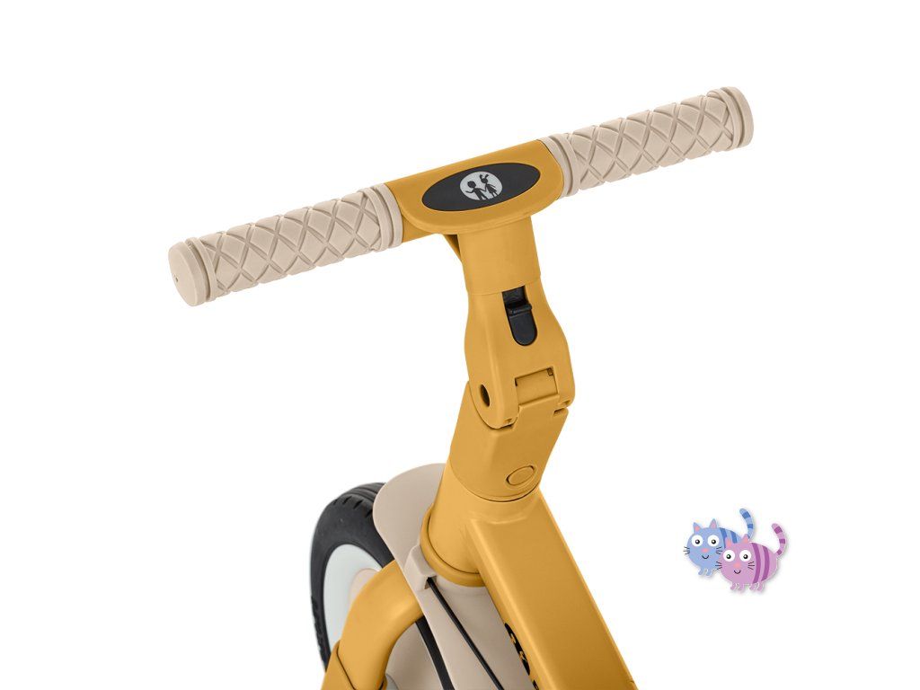 Řídítka s protiskluzovými gumovými rukojeťmi jsou nastavitelná, pedály jsou odnímatelné a sedlo se přizpůsobí výšce, přičemž díky nastavitelným bezpečnostním pásům je zajištěna maximální bezpečnost. Díky odolným gumovým kolům je kolo ideální pro dvou- i tříkolové verze, které zaručují stabilitu na různých površích.