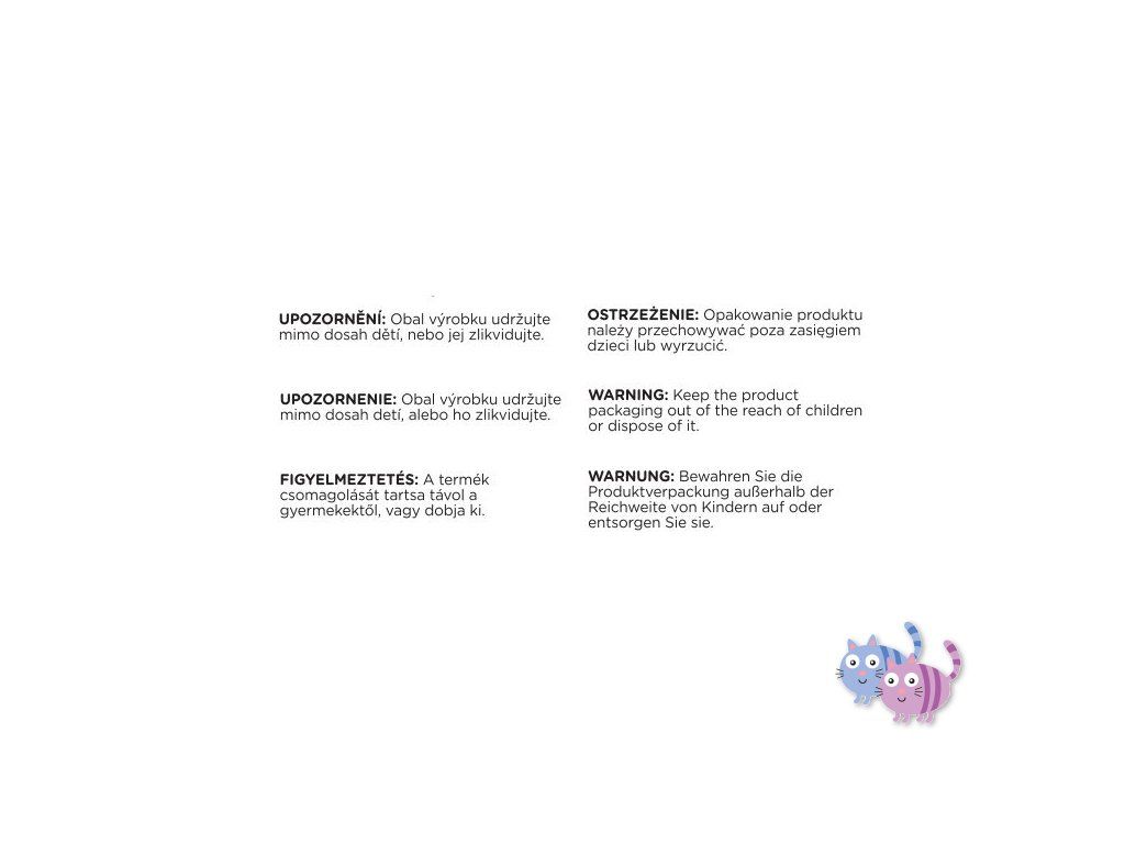 UPOZORNĚNÍ! Obal výrobku udržujte mimo dosah dětí, nebo jej zlikvidujte.