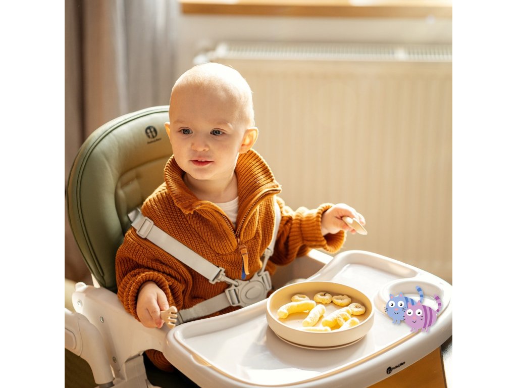 Péče o životní prostředí, kterou jsme při tvorbě této židle zohlednili, nezastínila nejdůležitější aspekty výrobku – byl totiž navržen tak, aby co nejbezpečněji zlepšil každodenní život děťátka i rodičů. Židle má všechny funkce, které usnadňují každodenní krmení: lze ji snadno sundat a vyčistit, má 5-bodové bezpečnostní pásy, nastavitelnou opěrku zad, nastavitelnou opěrku nohou, nastavitelnou výšku, dvě polohy pro podnos s horní částí, kterou lze mýt v myčce nádobí. Stabilní konstrukce židle zajistí bezpečnost vašeho dítěte bez ohledu na to, jak je aktivní nebo pohyblivé. Vysoce kvalitní provedení, promyšlená konstrukce, moderní a originální design a kompaktní skládání jsou nadčasové vlastnosti, které zajistí pohodlí pro vaše dítě od okamžiku, kdy se naučí sedět.