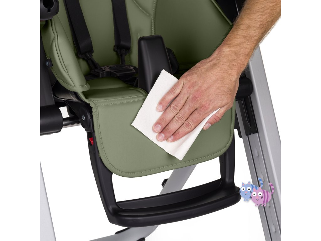 - 7-stupňové nastavení výšky s pohodlným tlačítkem umožňuje přizpůsobit výšku židle potřebám dítěte a rodiče.