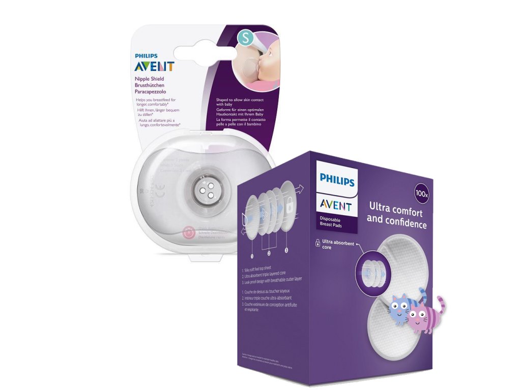 Philips AVENT Chránič bradavek - small 2 ks + ster.krabička + Prsní vložky jednorázové 100 ks
