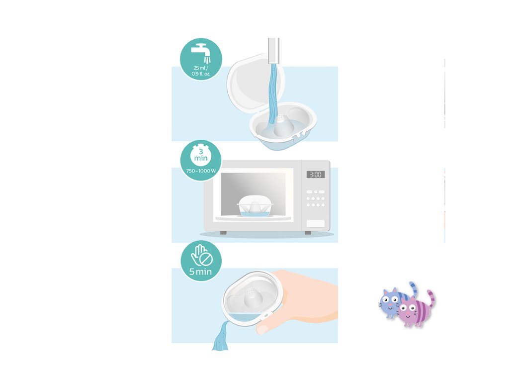 - sterilizační/transportní krabička umožňuje sterilizovat v mikrovlnné troubě a nosit s sebou