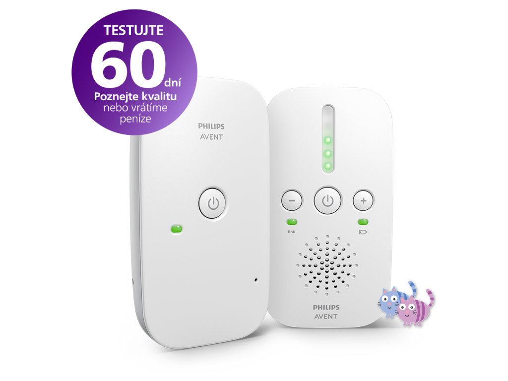 Digitální elektronická chůvička AVENT SCD502 s kvalitním jednostranným přenosem zvuku bez přeslechů.