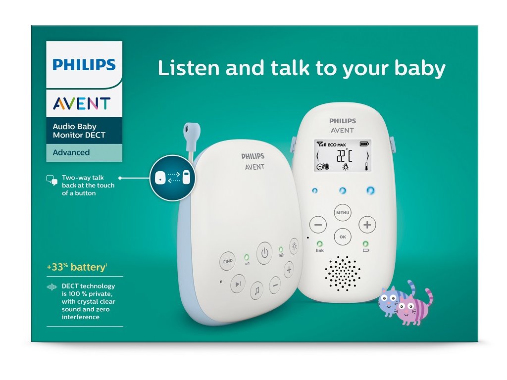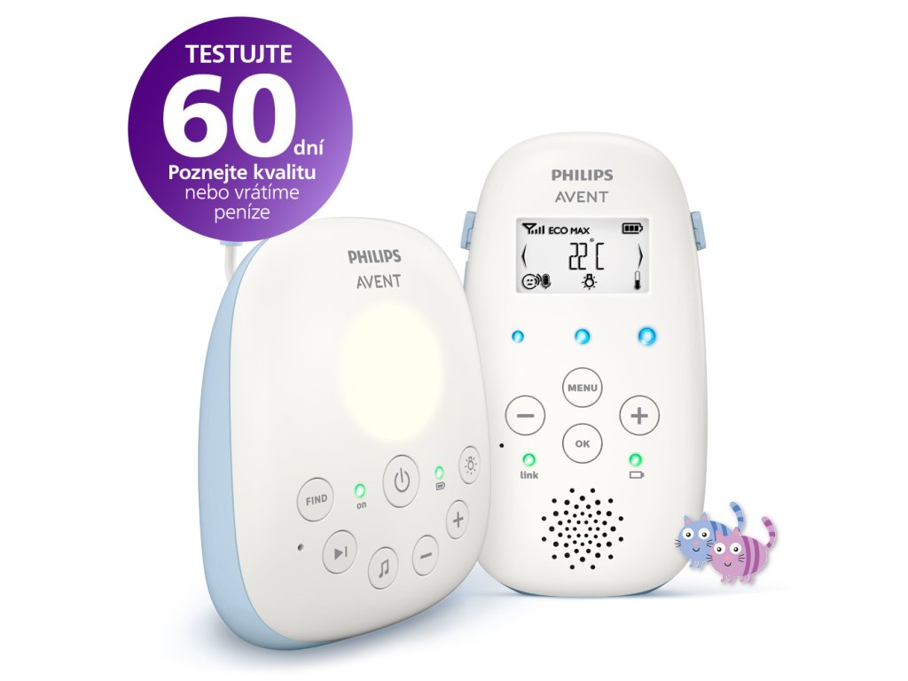S novou řadou monitorů DECT Philips AVENT můžete v klidu odpočívat s vědomím, že je vaše dítě spokojené, i když s ním nejste v místnosti.