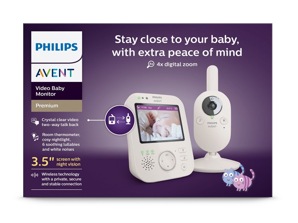 Zařízení Philips Avent SCD891 vám umožňuje neustálý a bezpečný kontakt s dítětem. Miminko uslyšíte v dokonalé zvukové kvalitě a rovněž ho uvidíte díky vysoké kvalitě obrazu (na LCD displej o velikosti 8,5cm (3,5"), ve dne i v noci.