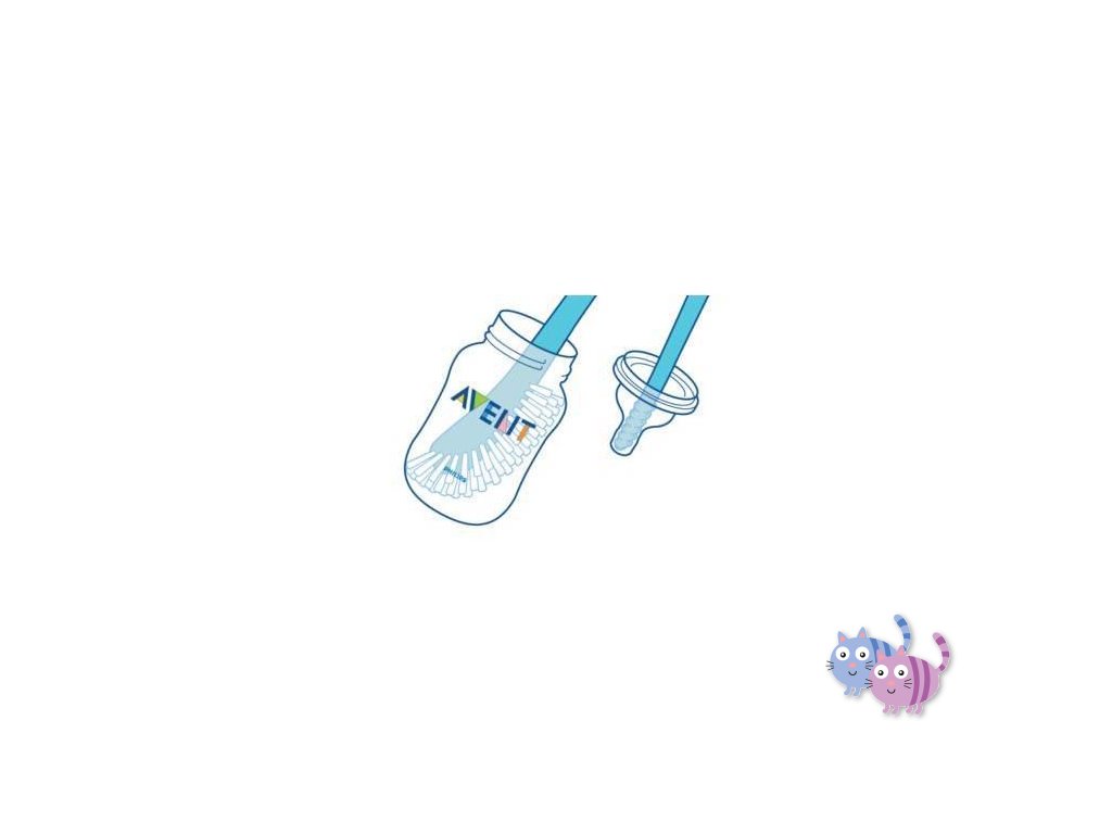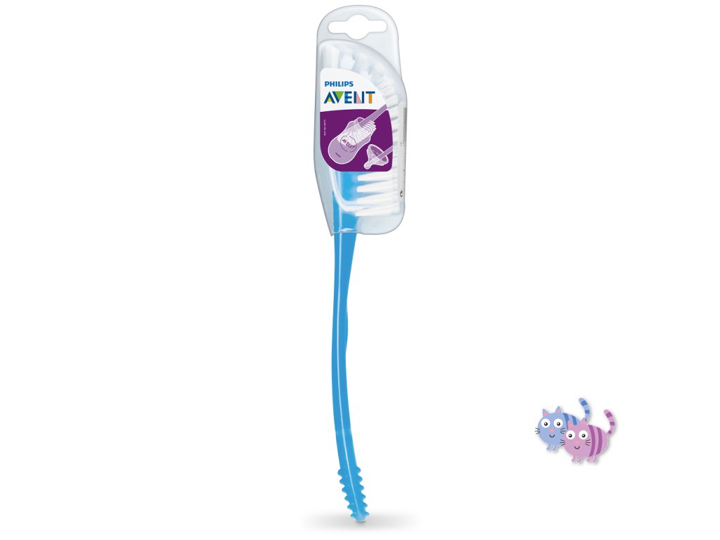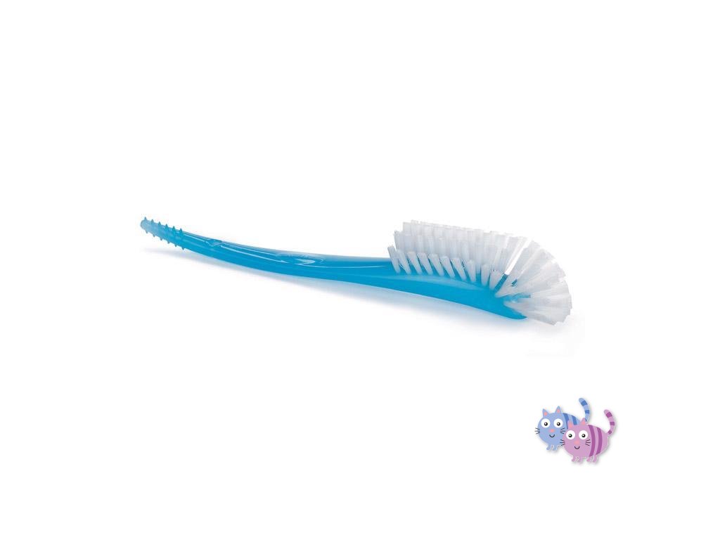 Speciálně zakřivený kartáč a tvarovaná rukojeť umožňují dokonalé vyčištění všech záhybů kojeneckých lahví, dudlíků i hubiček. Na rukojeti je speciálně vytvarovaný konec na čistění špatně dostupných míst např. u hubiček.