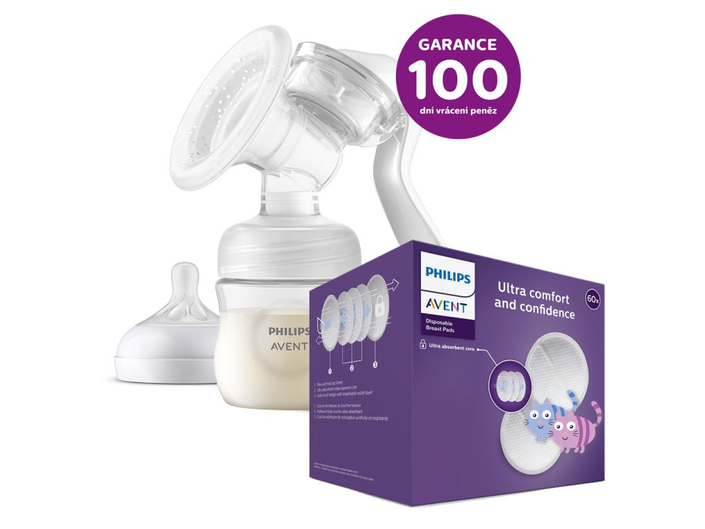 Philips AVENT Odsávačka mateř. mléka manuální + Prsní vložky jednorázové 60 ks