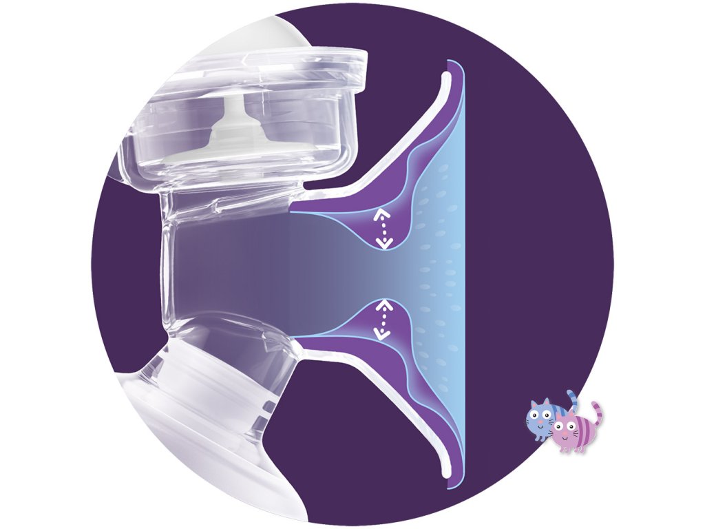 Efektivně kombinuje vakuum a stimulaci bradavek pro rychlejší tok mléka (Na základě klinického testování provedeného v roce 2019, v porovnání s výsledky předchozího modelu výrobku. Více informací na www.philips.com/avent)