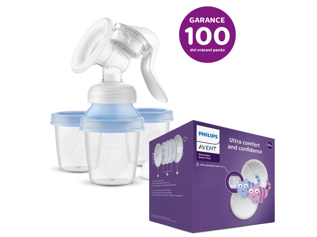 Philips AVENT Odsávačka mateř. mléka manuální s VIA systémem + Prsní vložky jednorázové 60 ks