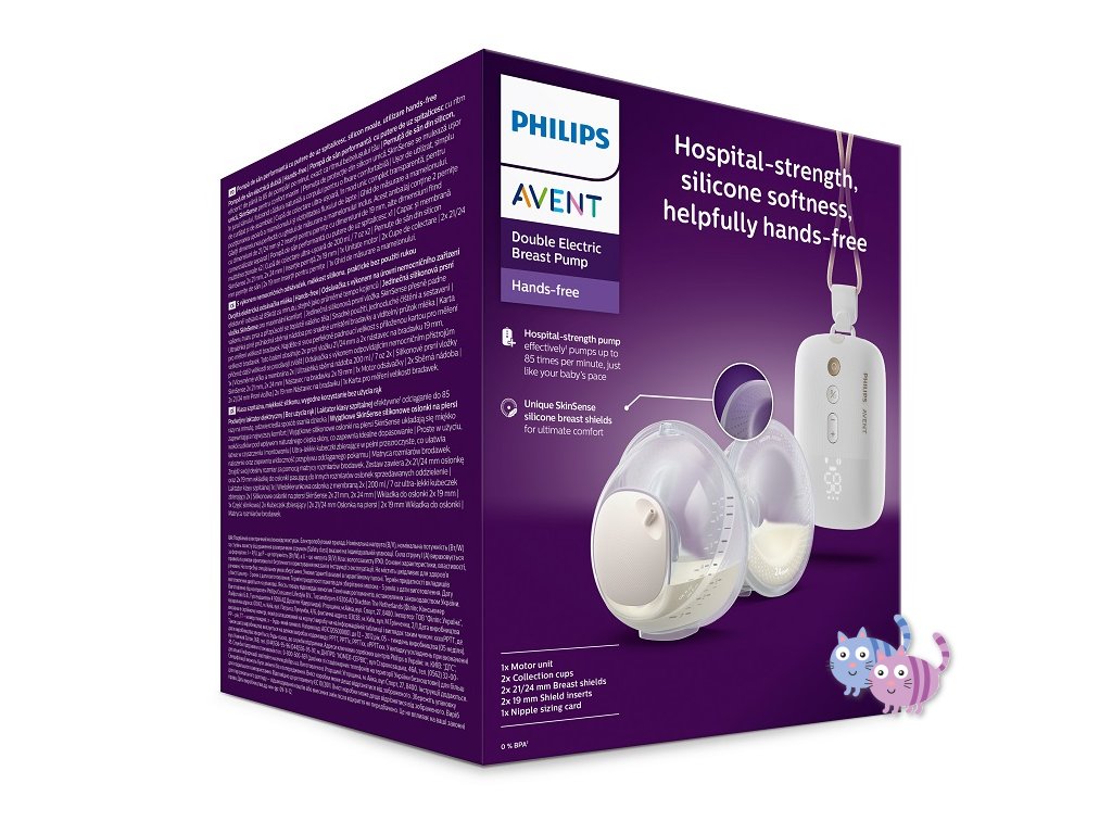 Dvojitá elektrická odsávačka mléka bez nutnosti použití rukou Philips Avent je určena pro efektivní a pohodlné odsávání mateřského mléka. Napodobuje rytmus pití miminka a díky svému výkonu, jemnosti a lehkosti je ideálním pomocníkem pro