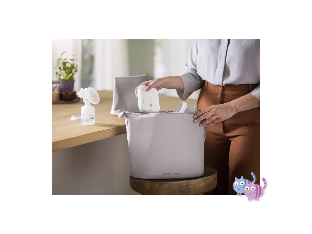 Obsahuje vše potřebné k odsátí a uskladnění mateřského mléka a nakrmení miminka.