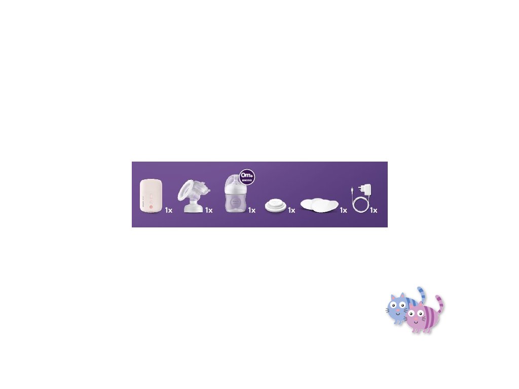 Obsahuje vše potřebné k odsátí a uskladnění mateřského mléka a nakrmení miminka.