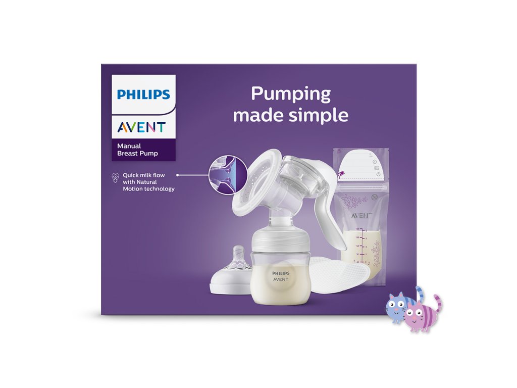 Přenosná ruční odsávačka mateřského mléka Philips Avent s technologií Natural Motion, inspirovaná dětským sáním, pro rychlý tok mléka. Sedí na všechny bradavky a má snadno nastavitelný rytmus a odsávání. Důležité je najít správný dudlík.