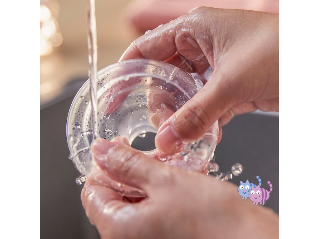 - Než začnete sahat na části odsávačky a prsa, pečlivě si umyjte ruce mýdlem a vodou, abyste předešli kontaminaci. Pokud možno se nedotýkejte vnitřku nádob nebo víček.