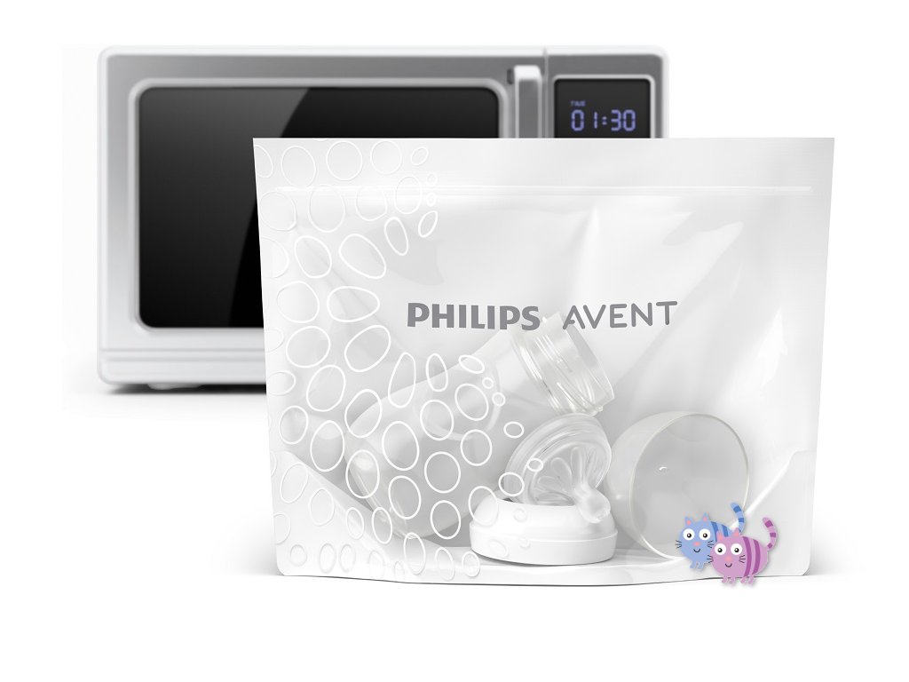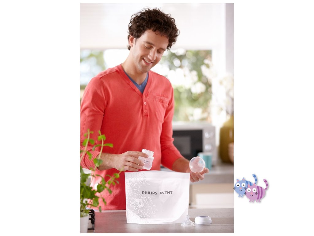 Parní sterilizační sáčky Philips Avent do mikrovlnné trouby jsou rychlým, snadným a účinným způsobem, jak zajistit, že budete vždy mít sterilní kojenecké lahve a výrobky, ať jste kdekoli. S každým sáčkem lze lahve sterilizovat v mikrovlnné troubě za pouhých 90 sekund.