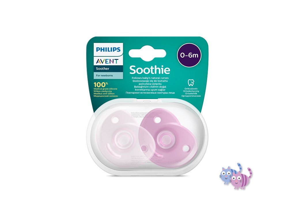 Philips AVENT Šidítko Soothie 0-6m dívka, 2 ks