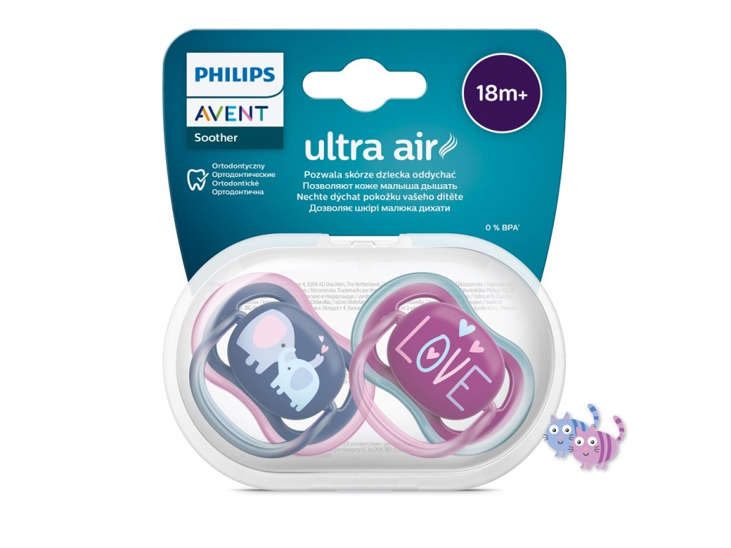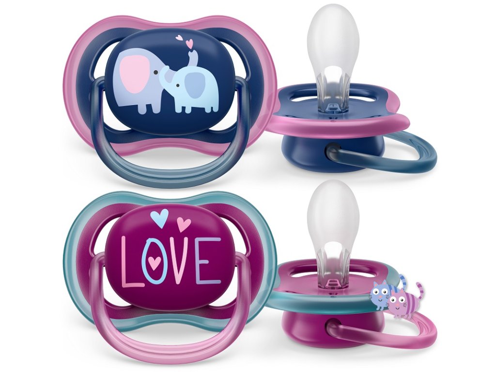 Philips AVENT Šidítko Ultra air 18m+ dívka (slon), 2ks