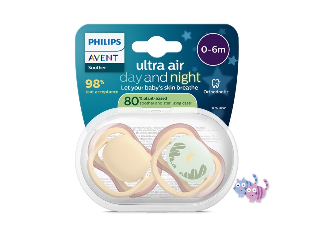 Philips AVENT Šidítko Ultra air denní a noční neutral/obrázek 0-6m, 2ks