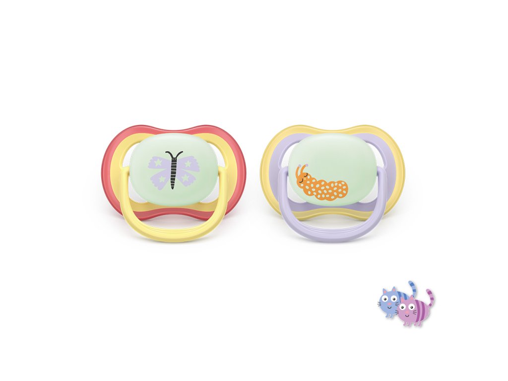 Philips AVENT Šidítko Ultra air noční 0-6m dívka, 2ks