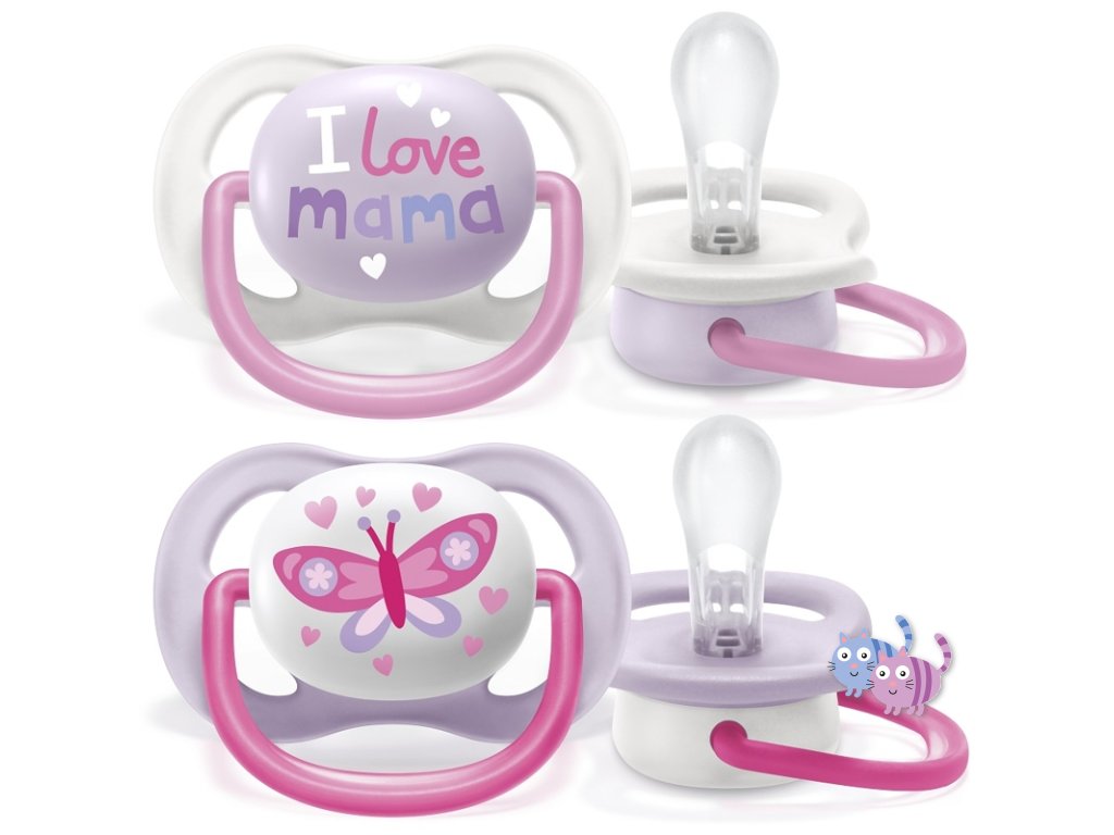 Philips AVENT Šidítko Ultra air Text 0-6m dívka, 2 ks