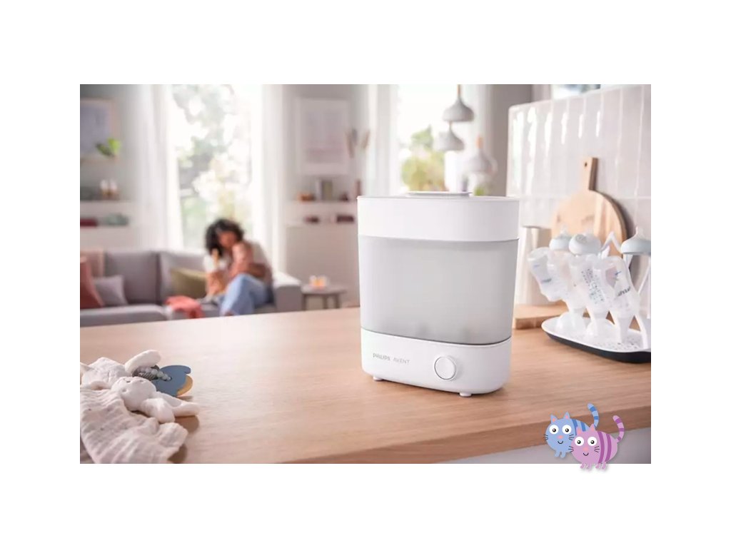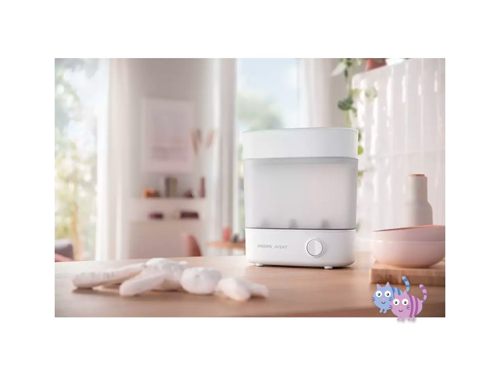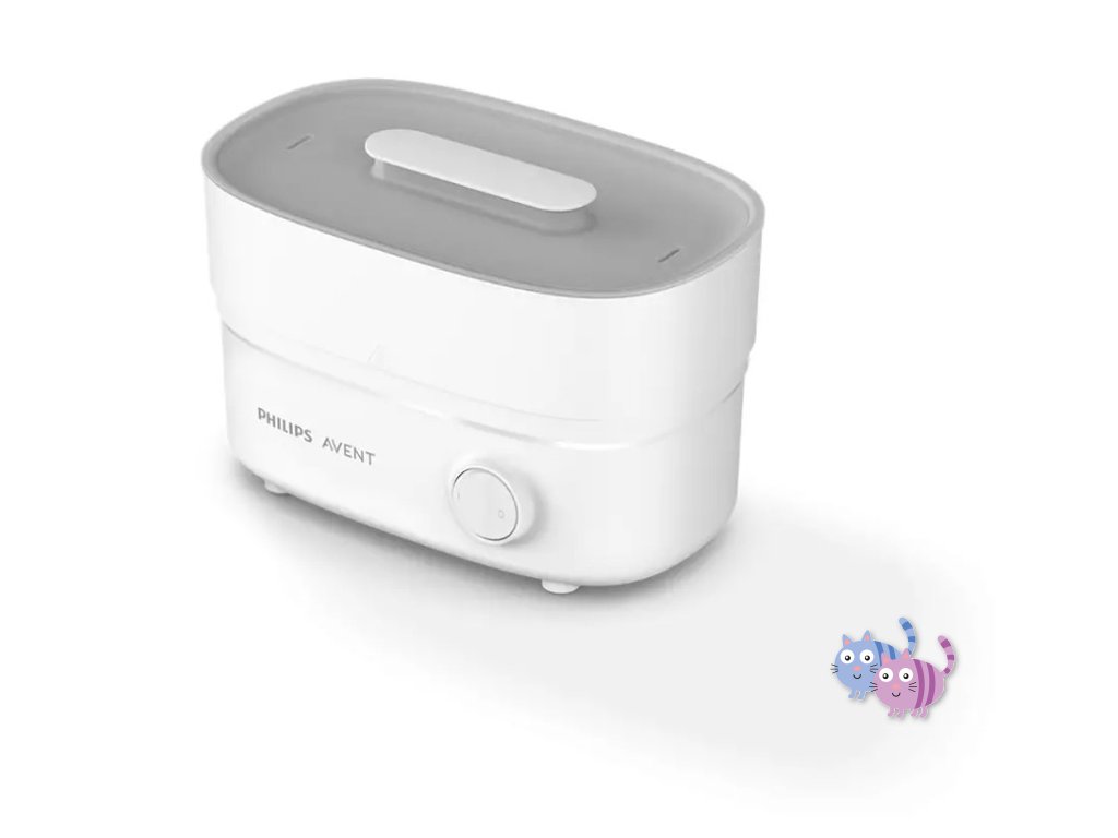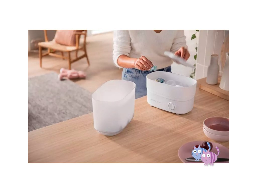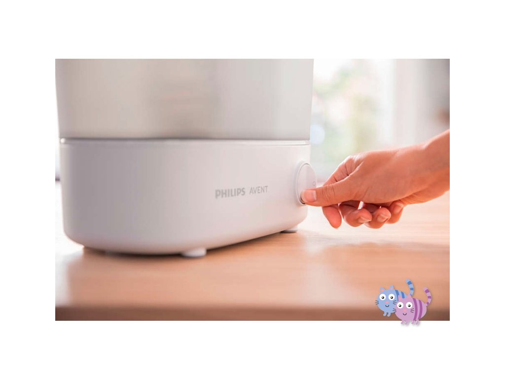 - Vysterilizuje až 6 lahví AVENT za pouhých 10 minut a automaticky se vypne.