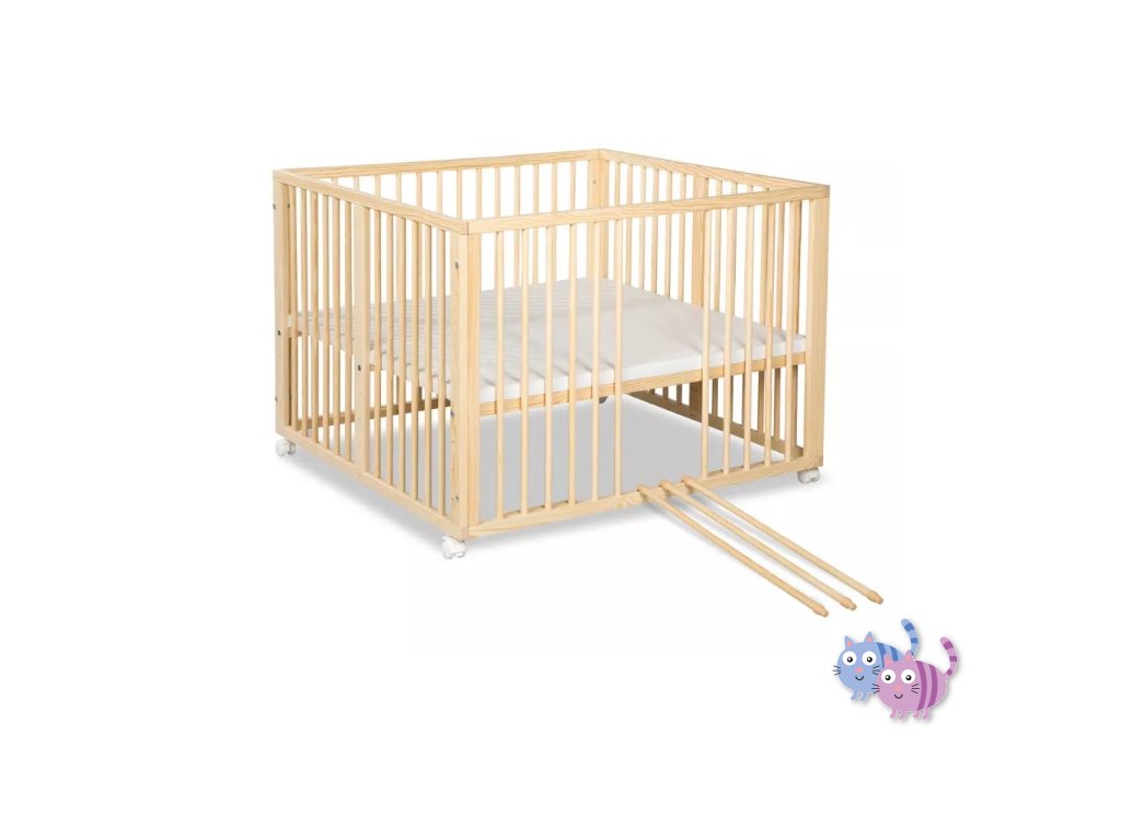Velmi oblíbená dřevěná ohrádka, s polohovacím dnem. Ohrádka je přiměřeně velká pro hry miminek a batolátek. Díky jednoduše polohovacímu dnu mohou rodiče dobře manipulovat s ležícím miminkem.