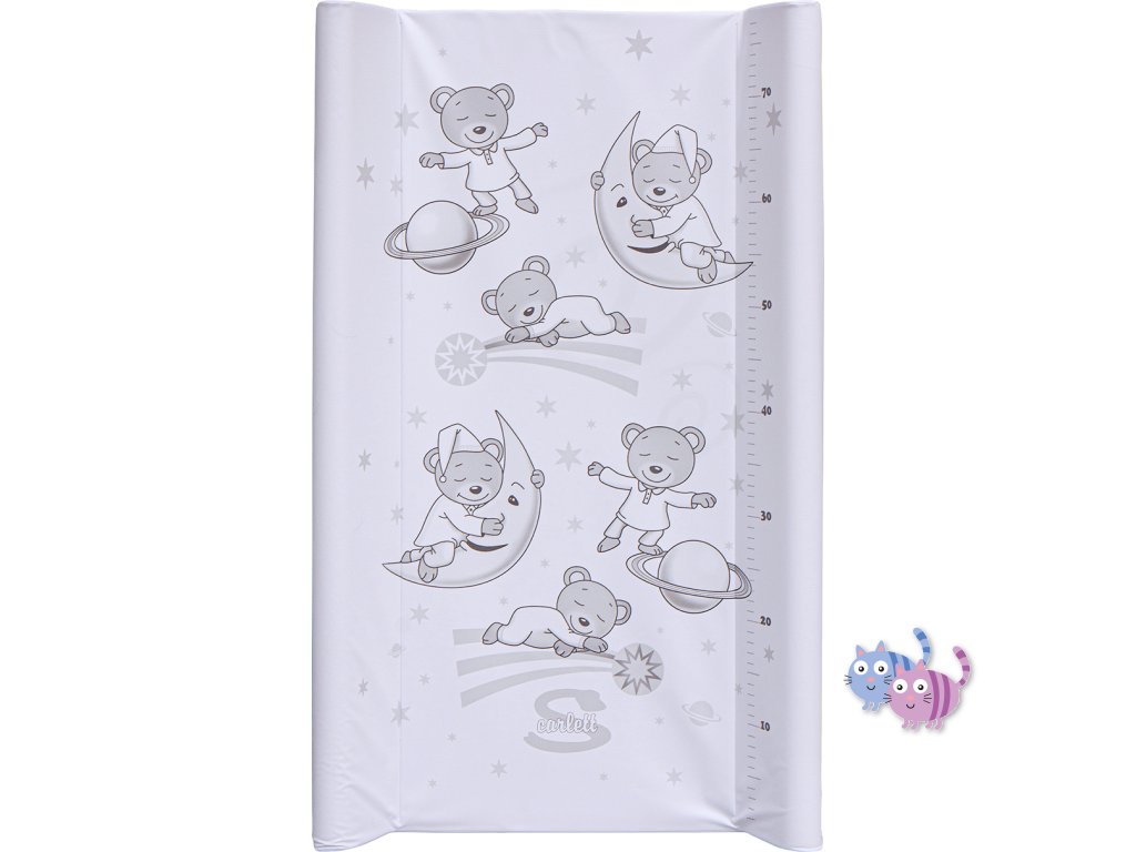Přebalovací podložka s kapsou na spodní straně a profilovanými okraji z kvalitním PVC potahem bez ftalátů, vyplněná molitanem. Tato podložka je určena na komody s výklopnou deskou. Motivy přebalovacích podložek se často obměňují.