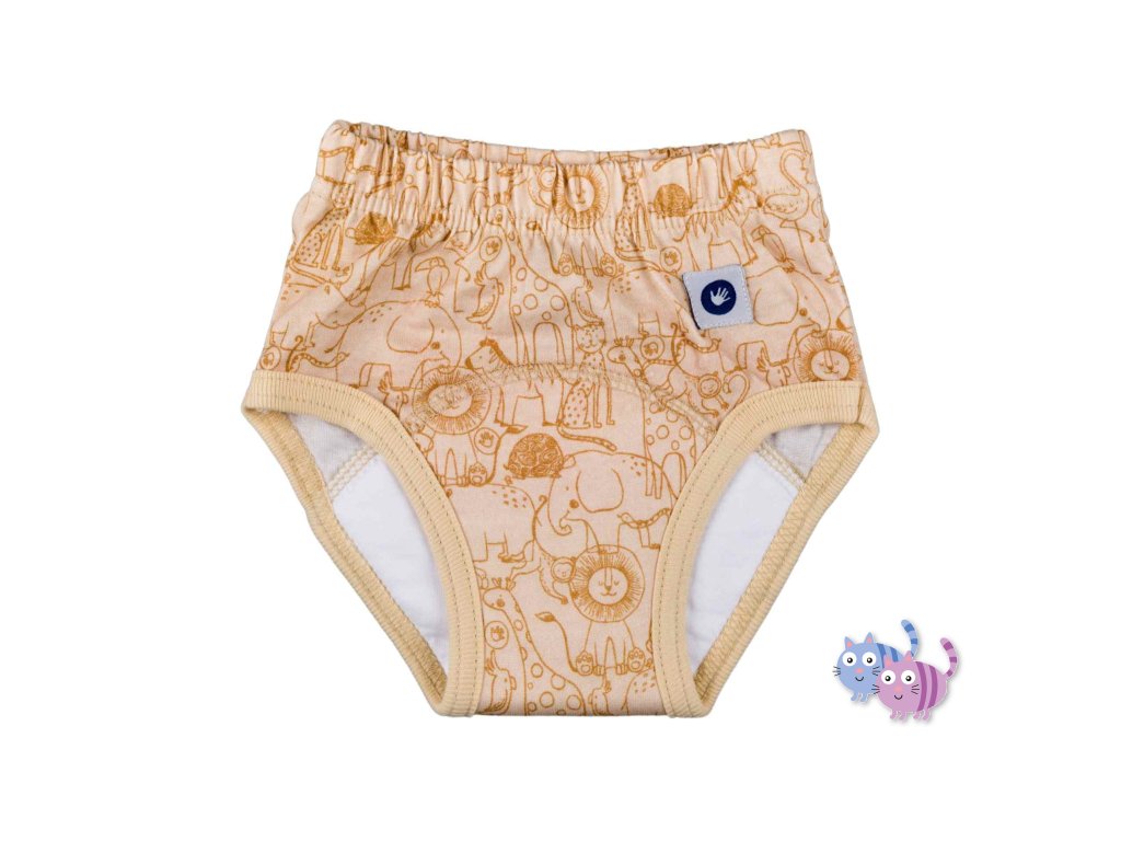 " Plenkové učící (tréninkové) kalhotky jsou určeny pro dítě, které již přechází na nočník a občas se mu přihodí nepříjemná příhoda. Nepropustná vrstva, spolu s absorpční vrstvou částečně chrání okolí před znečištěním. Můžete je dát dítěti jako dárek. Pomůže to zesílení jeho pocitu, že je již velké, a že brzy nebude plenky potřebovat. Na rozdíl od plenek se učící kalhotky oblékají a svlékají místo přebalování a vaše dítě se může cítit stejně jako velký chlapec nebo dívka."