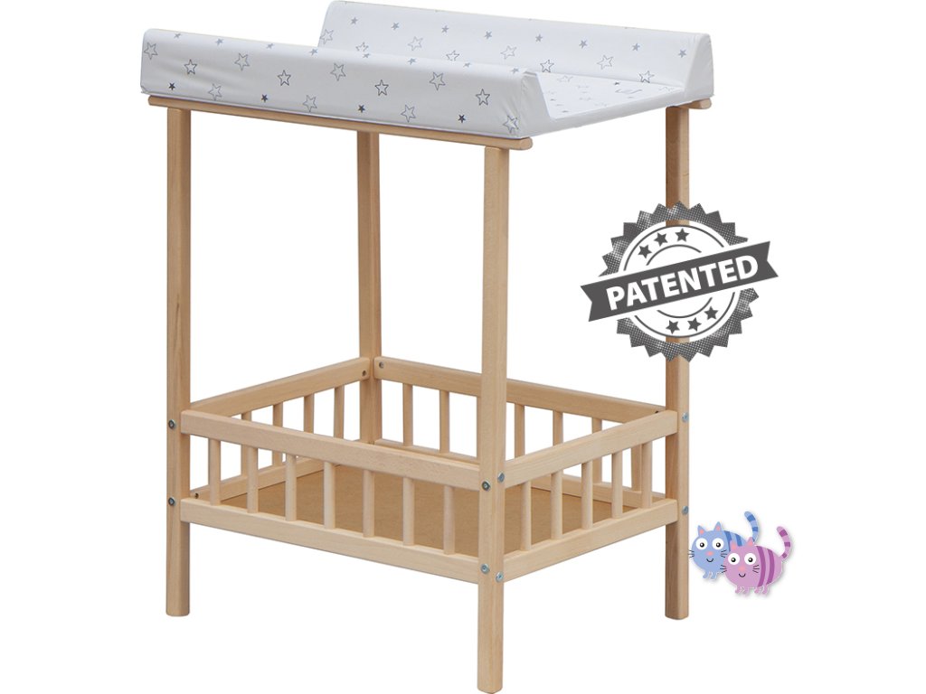 Praktický přebalovací pult se dvěmi policemi z HDF desky. Vrchní přebalovací pult z polyuretanu potažený omyvatelným PVC, vyztužený MDF deskou.