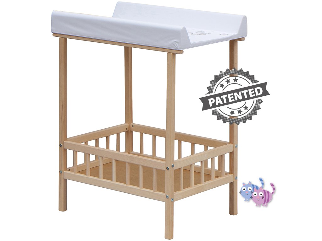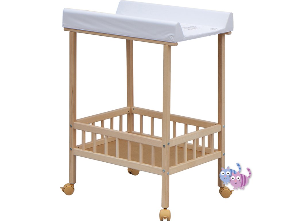 Praktický přebalovací pult se dvěmi policemi z HDF desky. Vrchní přebalovací pult z polyuretanu potažený omyvatelným PVC, vyztužený MDF deskou.