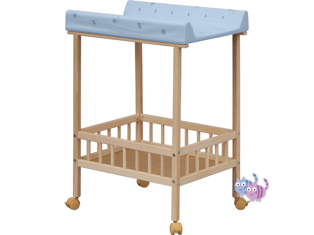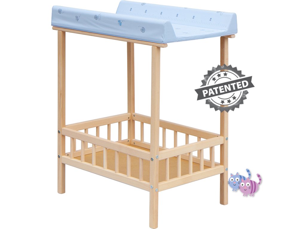 Praktický přebalovací pult se dvěmi policemi z HDF desky. Vrchní přebalovací pult z polyuretanu potažený omyvatelným PVC, vyztužený MDF deskou.