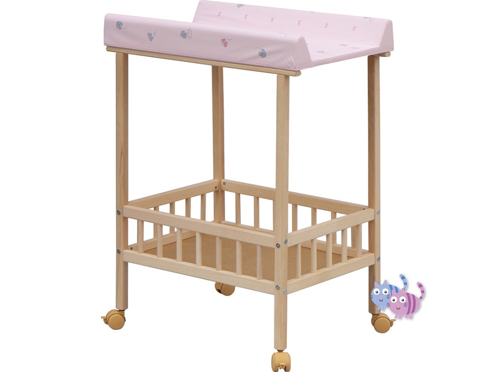 Praktický přebalovací pult se dvěmi policemi z HDF desky. Vrchní přebalovací pult z polyuretanu potažený omyvatelným PVC, vyztužený MDF deskou.