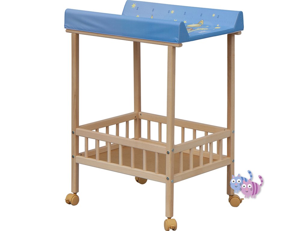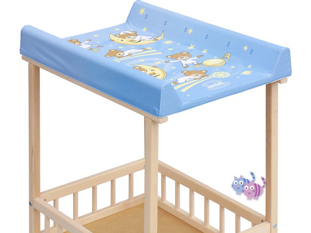 Praktický přebalovací pult se dvěmi policemi z HDF desky. Vrchní přebalovací pult z polyuretanu potažený omyvatelným PVC, vyztužený MDF deskou.