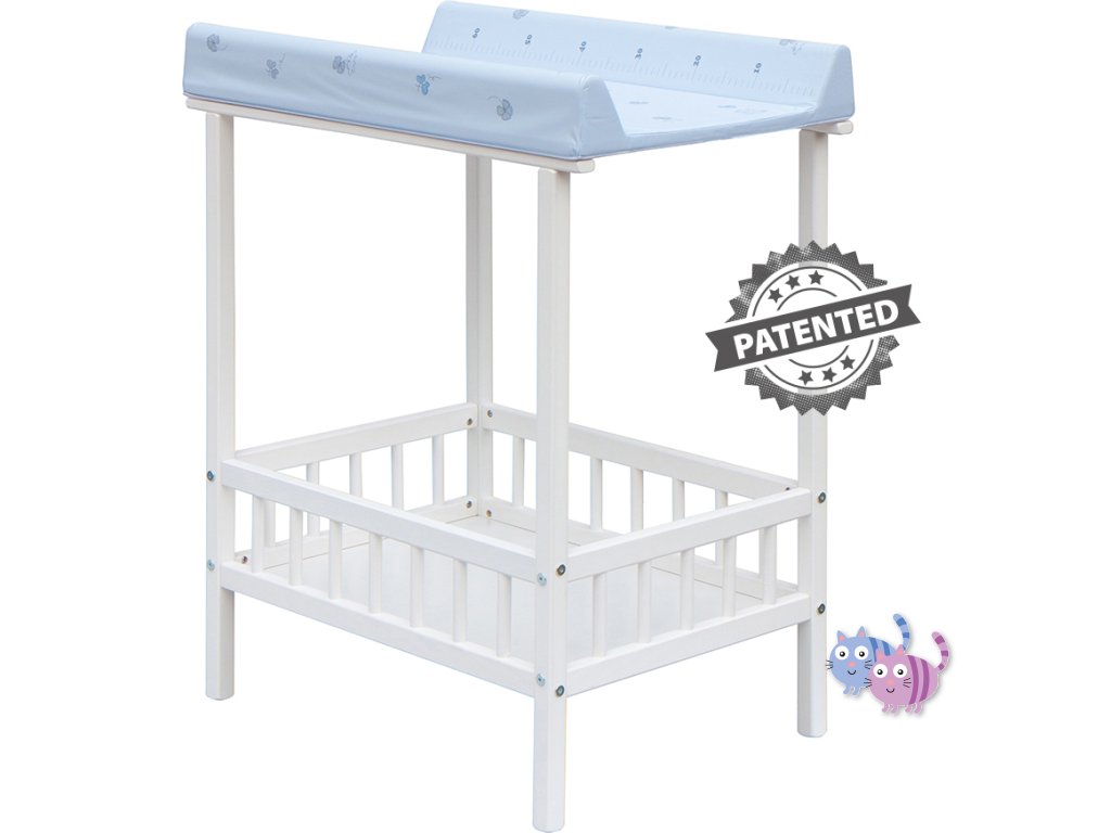 Praktický přebalovací pult se dvěmi policemi z HDF desky. Vrchní přebalovací pult z polyuretanu potažený omyvatelným PVC, vyztužený MDF deskou.