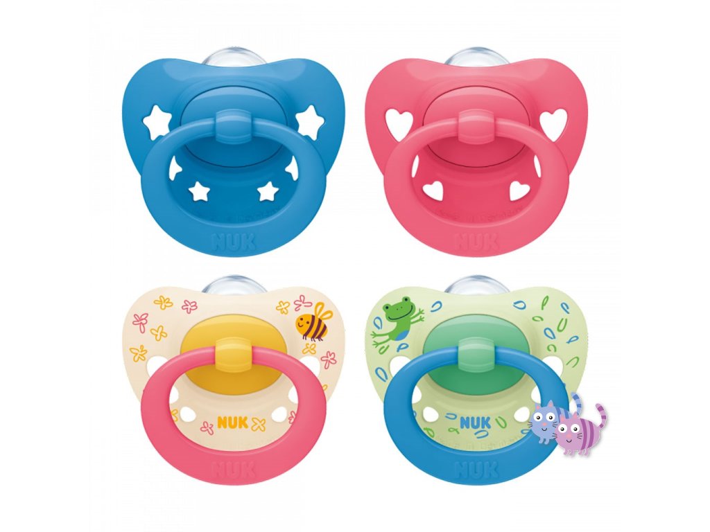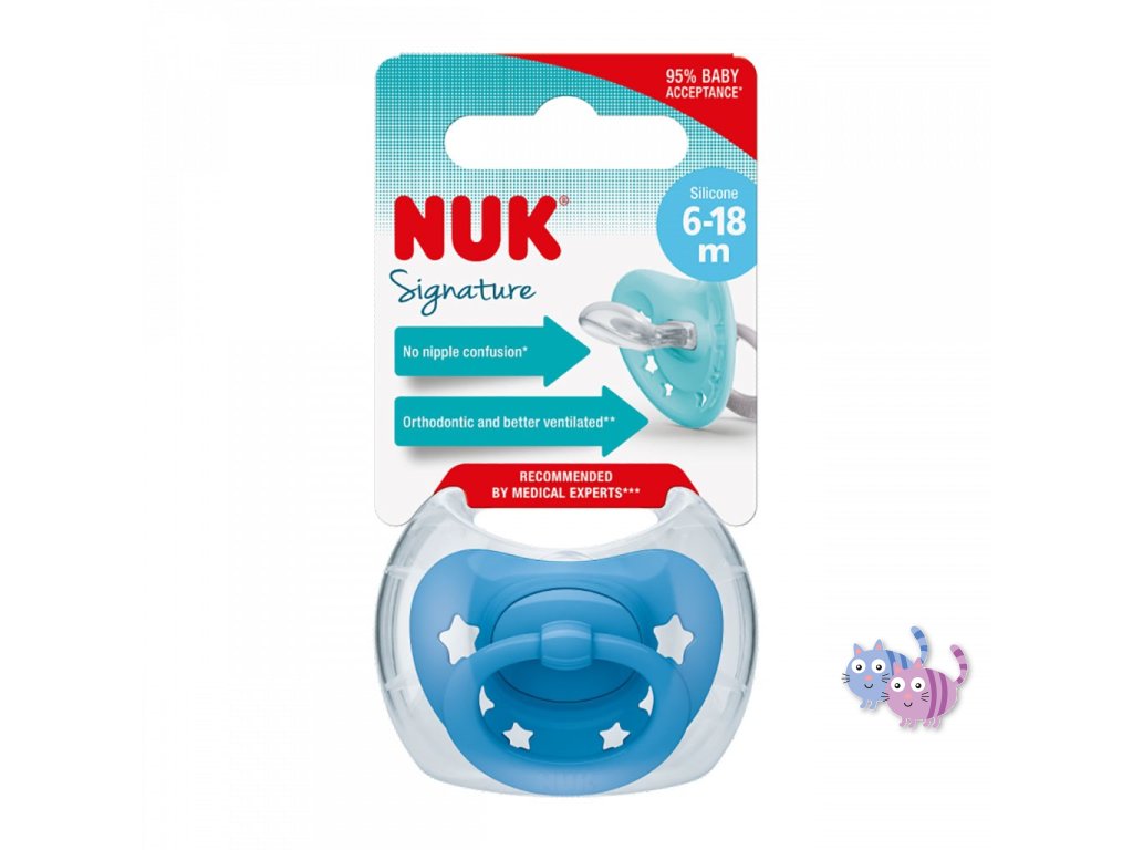 Kojenecký dudlík NUK Signature 6-18 měsíců. Ortodontický tvar podporuje vývoj celé ústní dutiny dítěte. Dudlík je vylepšený a má ještě plošší tvar. Je vyroben z vysoce kvalitního plastu a silikonového dudlíku. A nyní má tento široce oblíbený dudlík úžasný nový vzhled – oblíbený oblý tvar naústního štítu ve tvaru srdce a módní vylepšení roztomilého kroužku. Díky tomu bude malý obličejík vypadat ještě roztomileji. Každý nový dudlík NUK dodáváme v odolné, znovu použitelné krabičce, která dudlík udržuje čistý. Krabička je navíc vhodná pro hygienické čištění v mikrovlnné troubě. Náustní kryt a kroužek jsou vyrobeny z polypropylenu a neobsahují BPA. Velikost 2 (6-18 měsíců). Všechny NUK dudlíky jsou pravidelně testovány a sledovány nezávislými instituty.