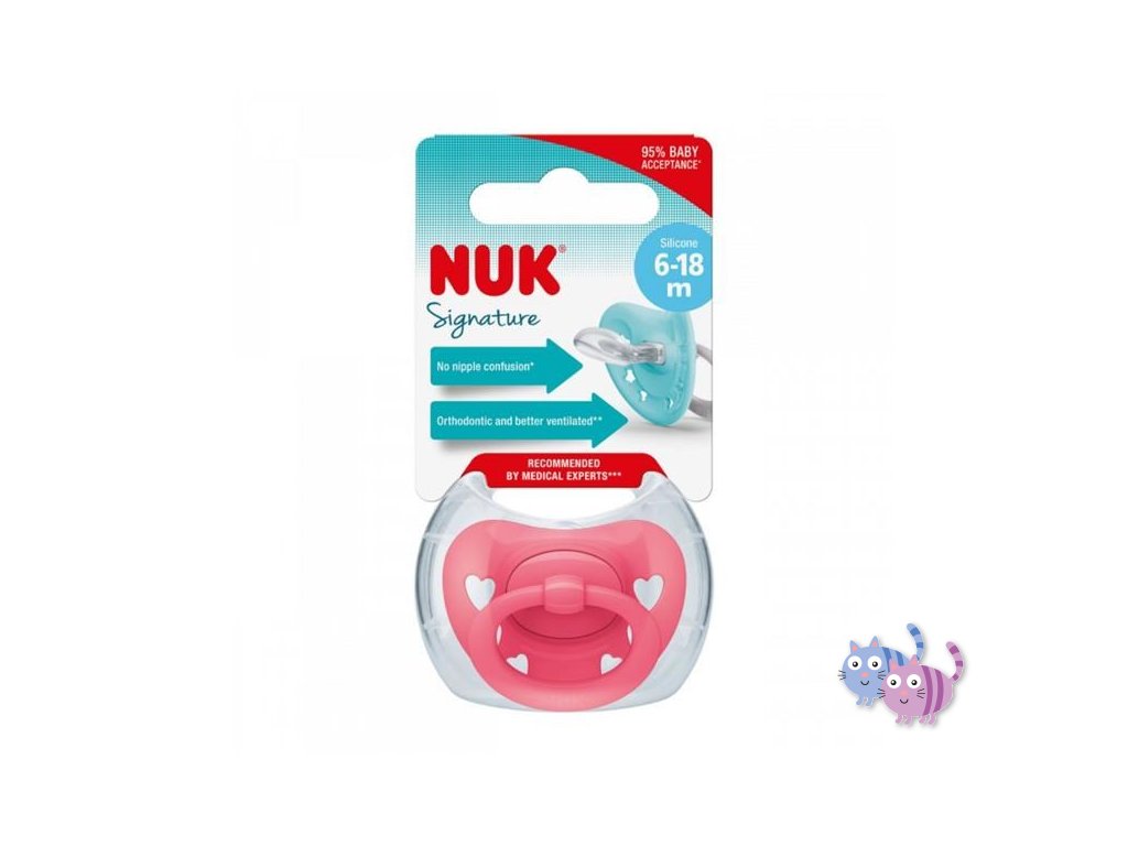 Kojenecký dudlík NUK Signature 6-18 měsíců. Ortodontický tvar podporuje vývoj celé ústní dutiny dítěte. Dudlík je vylepšený a má ještě plošší tvar. Je vyroben z vysoce kvalitního plastu a silikonového dudlíku. A nyní má tento široce oblíbený dudlík úžasný nový vzhled – oblíbený oblý tvar naústního štítu ve tvaru srdce a módní vylepšení roztomilého kroužku. Díky tomu bude malý obličejík vypadat ještě roztomileji. Každý nový dudlík NUK dodáváme v odolné, znovu použitelné krabičce, která dudlík udržuje čistý. Krabička je navíc vhodná pro hygienické čištění v mikrovlnné troubě. Náustní kryt a kroužek jsou vyrobeny z polypropylenu a neobsahují BPA. Velikost 2 (6-18 měsíců). Všechny NUK dudlíky jsou pravidelně testovány a sledovány nezávislými instituty.