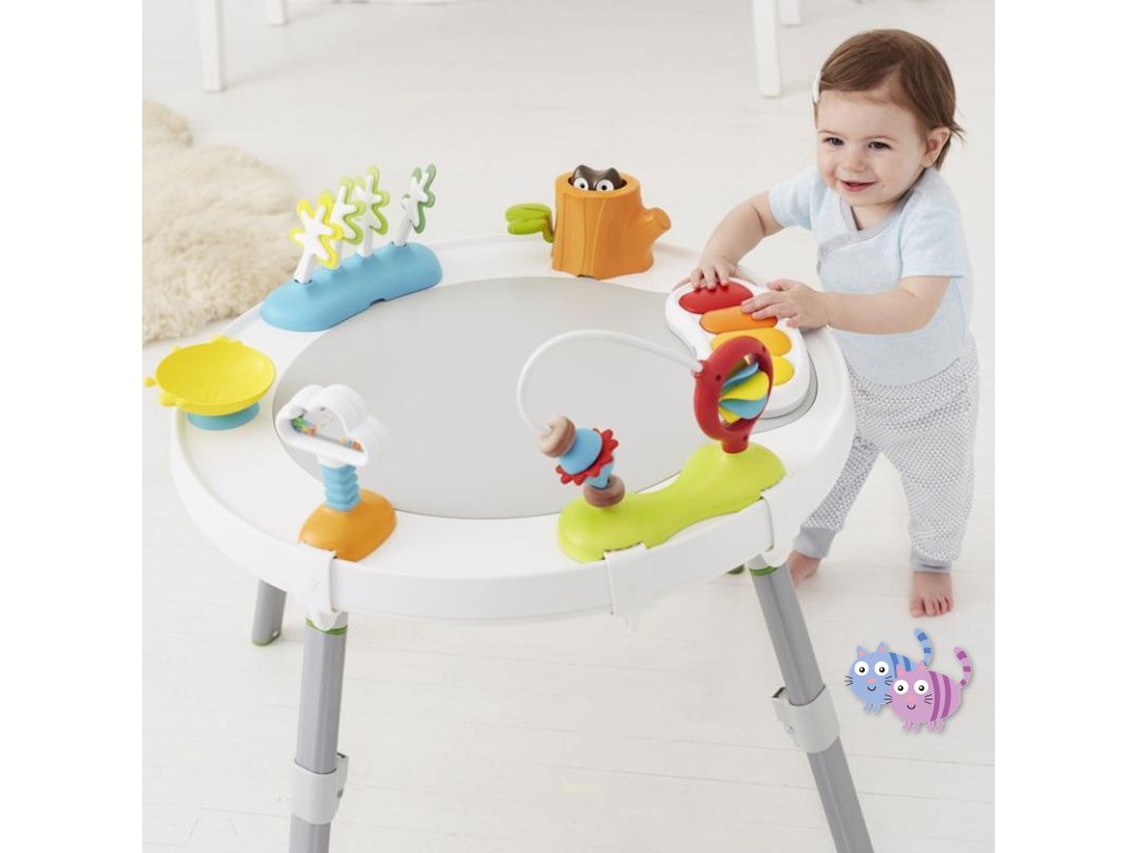 Moderní aktivní centrum, které okouzlí děťátko již od čtvrtého měsíce a starší! Centrum bylo navrženo ve spolupráci s pediatrem. Aktivní centrum zapojuje do hry a učení celé tělíčko děťátka. Snadná montáž hraček, které můžete umístit kamkoli, protože centrum je vybaveno sedací částí rotující do 360 stupňů, která se otáčí a roztahuje.