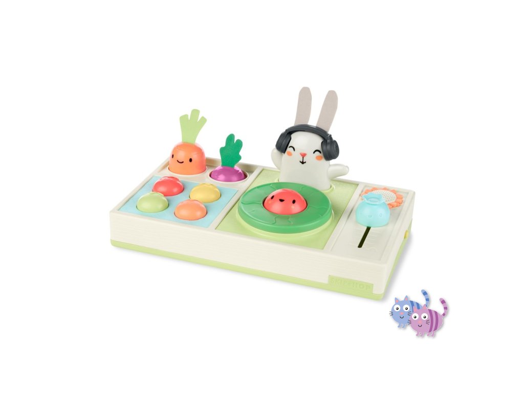 Mistři mini mixů si rádi zahrají čerstvou „červenou řepu“ s naším DJ setem s tématikou ovoce a zeleniny. Naše hudební hračka pro miminko, která je nabitá více než 30 hracími funkcemi včetně skvělého svítícího DJ zajíčka, písní, zvuků a dalších, rozjede párty a zároveň povzbudí jemné motorické dovednosti, koordinaci ruka-oko a další aktivity na budování dovedností.