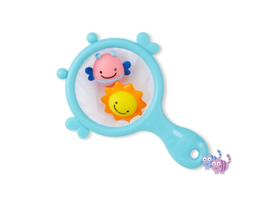 - síťka na hraní s robustní rukojetí pro snadné uchopení + 2 hračky;