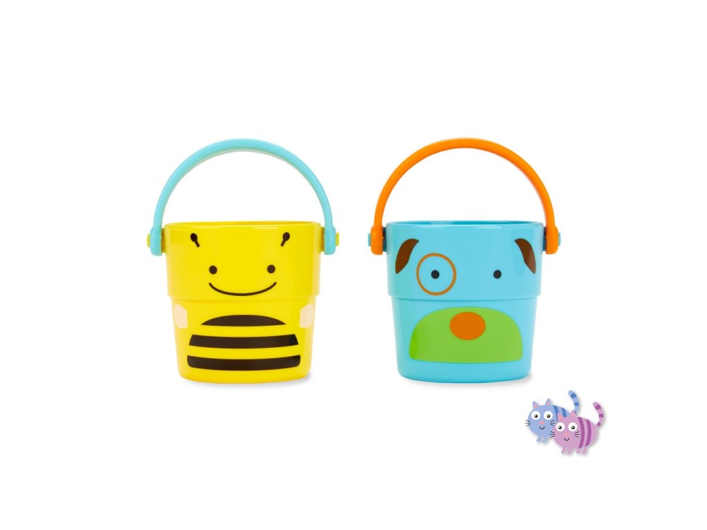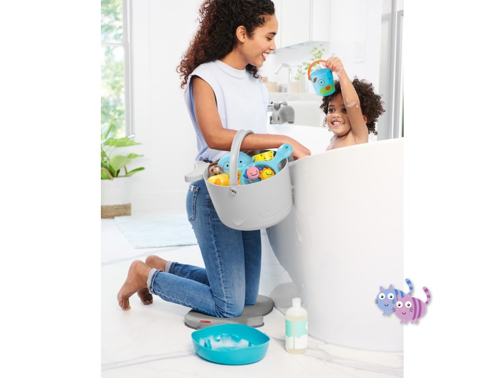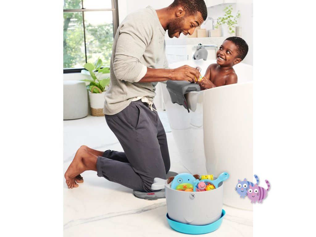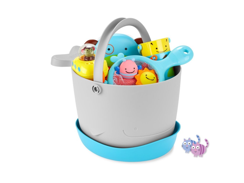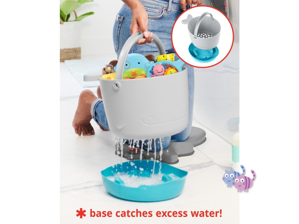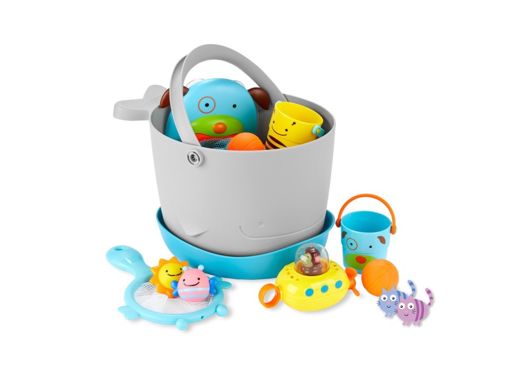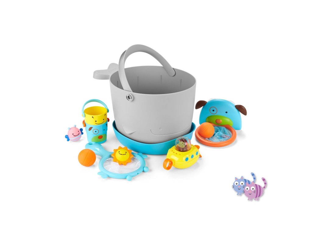 Soupravu hraček do koupele s kbelíkem (v nádherném zvířecím designu) si rodiče i děti zamilují. Díky velkým odtokovým otvorům a samostatné stojaté základně pro zachytávání přebytečné vody je sušení a skladování hraček bezproblémové.