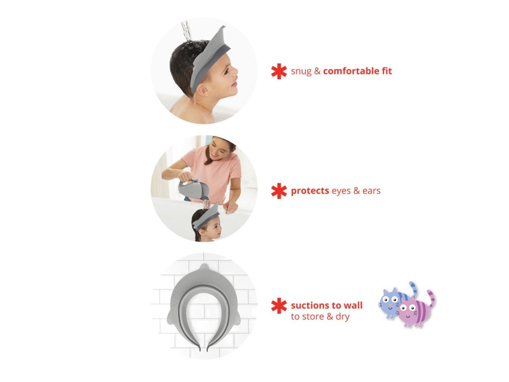 Už žádné slzy a pláč ve vaně! Ochranný kšilt se díky pohodlnému a flexibilnímu materiálu snadno přizpůsobí a vytváří přiléhavé těsnění, které chrání oči a uši malých dětí před vodou a šamponem. Otevřená záda usnadňuje mytí vlasů, zatímco praktická přísavka vám umožňuje zavěsit kšilt na zeď v koupelně, aby se vysušil a odložil, ale zároveň byl stále po ruce.