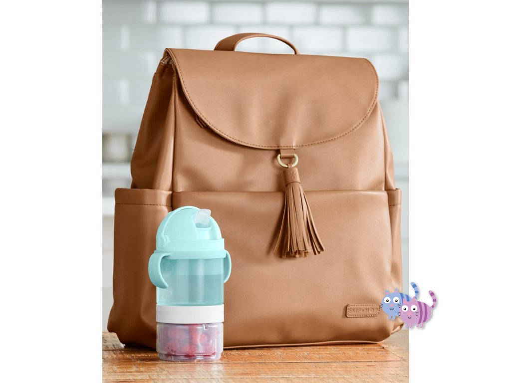 - 2 vyměnitelná víčka s různými funkcemi: víčko na pití s vyklápěním, čímž se udržuje náustek hygienicky čistý a víčko na svačinu s pružnými lamelami, které udržují jídlo uvnitř, ale jsou přístupné pro mlsouny zvenčí
