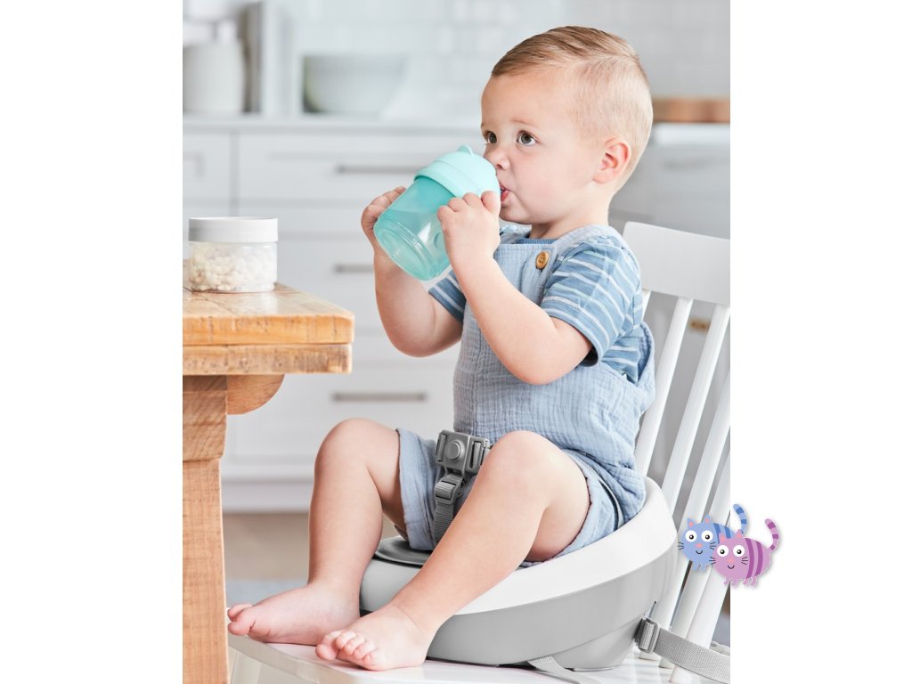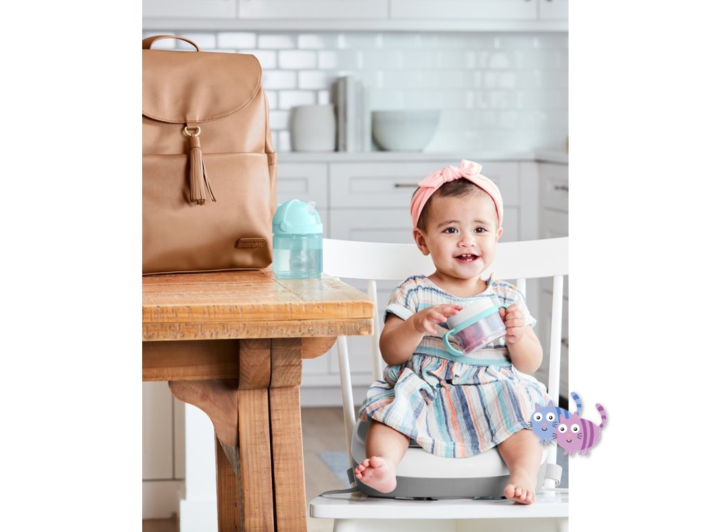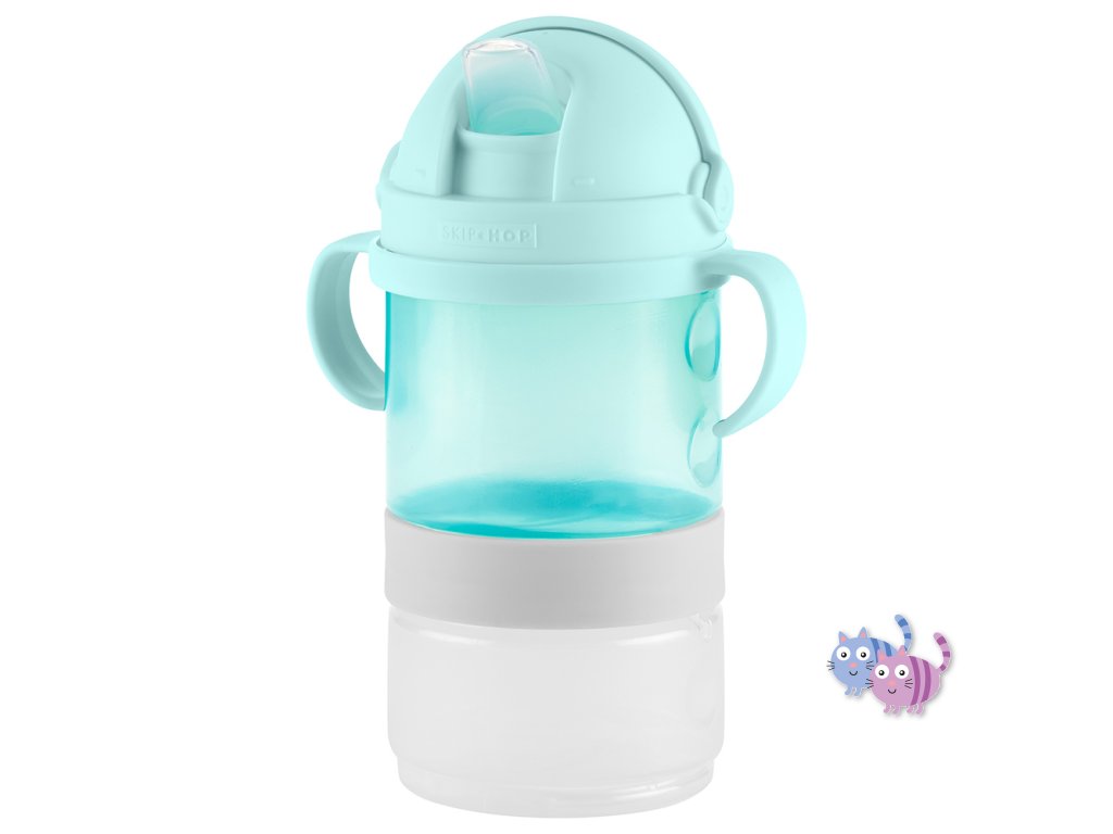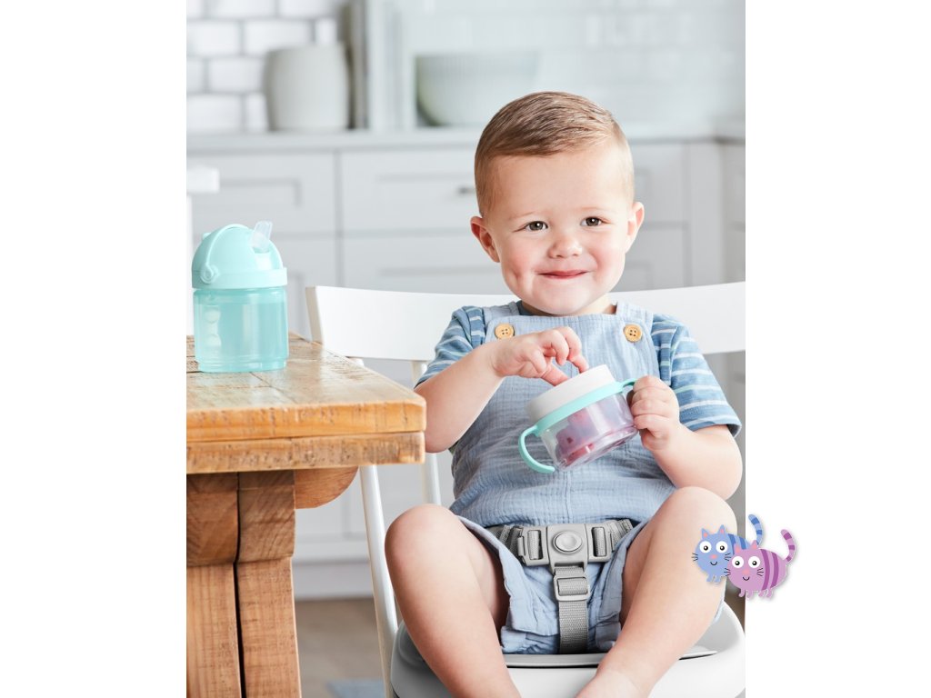Tato praktická 5dílná sada na jídlo a pití pro miminka a batolata má specifický design pro stohování, čímž se přizpůsobí vašim měnícím se potřebám. Díky této sadě mohou vaše dětičky popíjet a mlsat doma i na cestách. Díky dvěma kompatibilně vyměnitelným otočným uzávěrům/víčkům, dvěma nádobám a volitelné rukojeti vám tato sada umožňuje používat jednotlivé komponenty samostatně nebo je naskládat dohromady. Naplňte je cereáliemi, sušenkami, ovocem, vodou, džusem a dalšími oblíbenými jídly vašeho drobečka a můžete jít do světa.