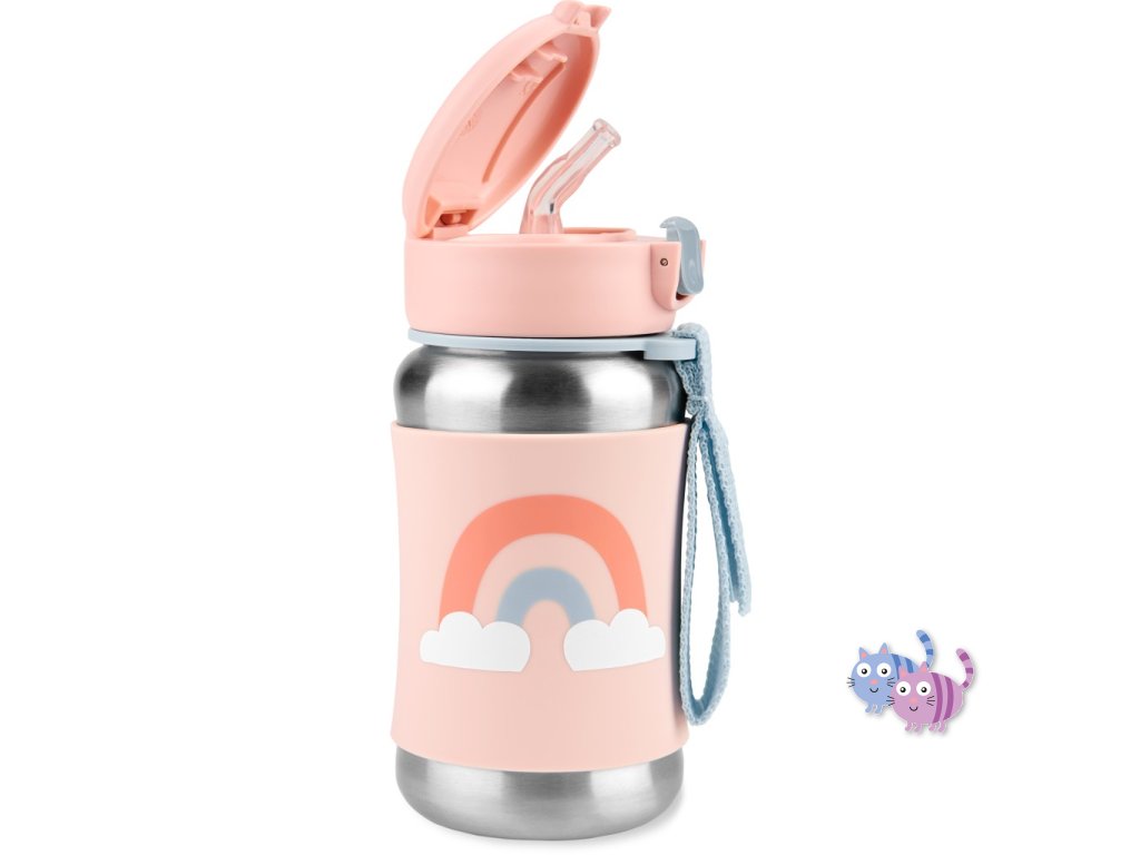 SKIP HOP Spark Style Láhev s brčkem na vodu nerez Duha 12m+