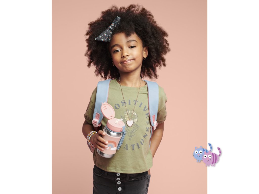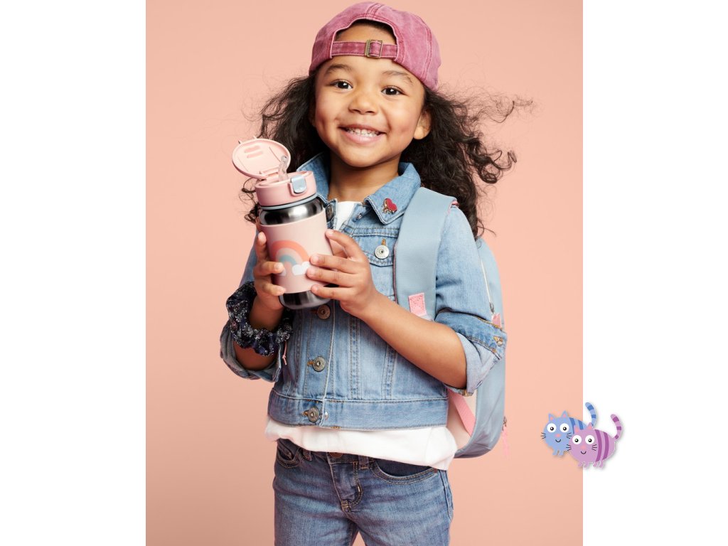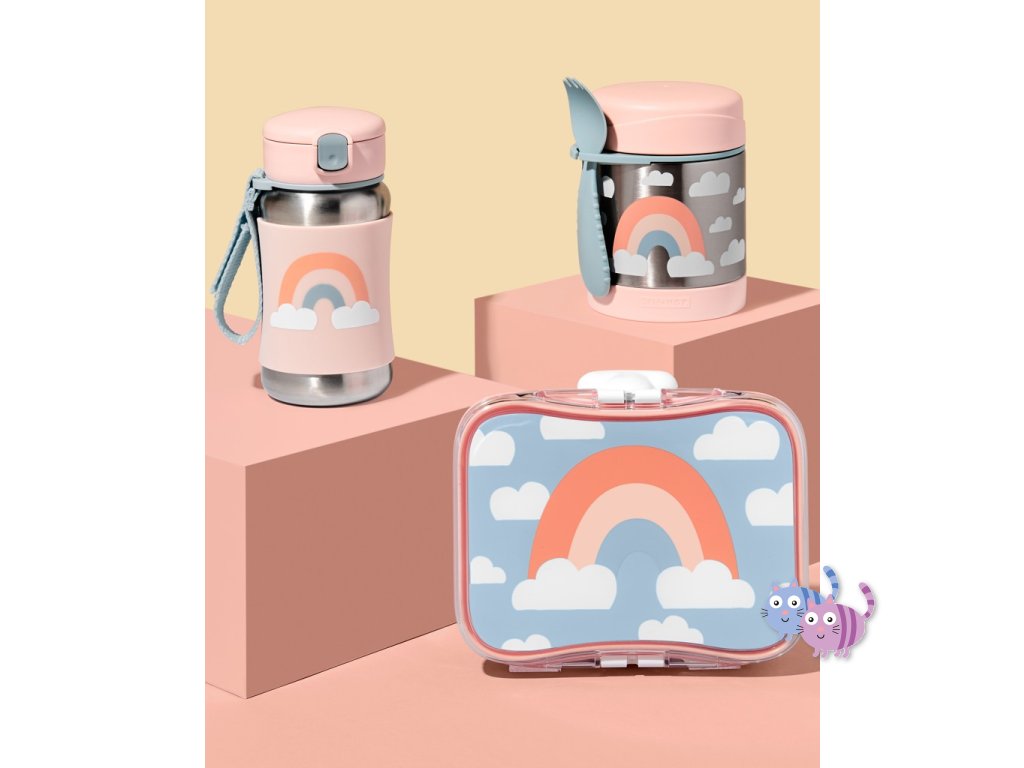 Láhev na vodu z nerezavějící oceli se skvělým designem, díky kterému mohou vyniknout malé osobnosti, pomáhá udržovat nápoje chladné i na cestách. Zavírací víko udržuje brčko čistou, zatímco protiskluzový silikonový návlek chrání malé ručičky před studenými povrchy. Obsahuje praktickou úchytku na suchý zip. Nakombinujte si produkty ve stejném designu z celé kolekce Spark Style.