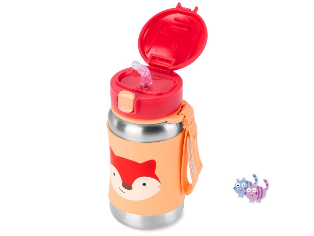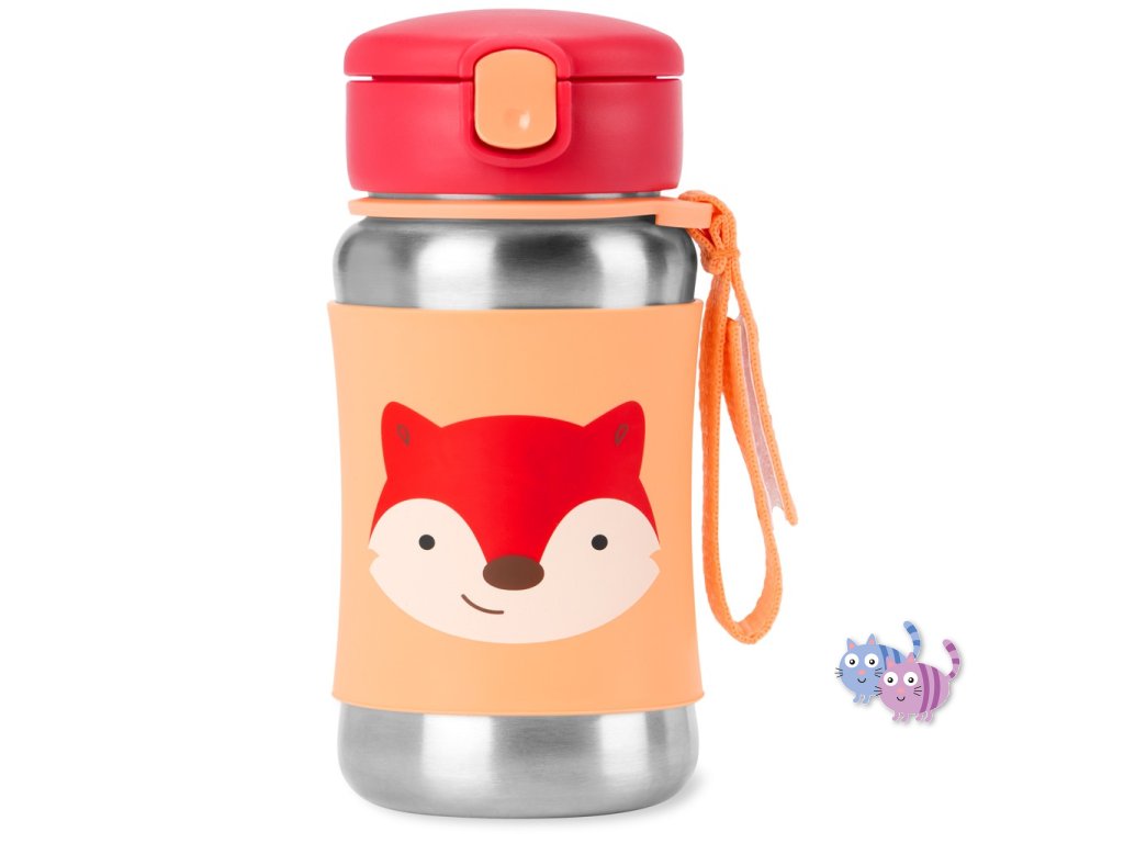 SKIP HOP Spark Style Láhev s brčkem na vodu nerez Liška 12m+