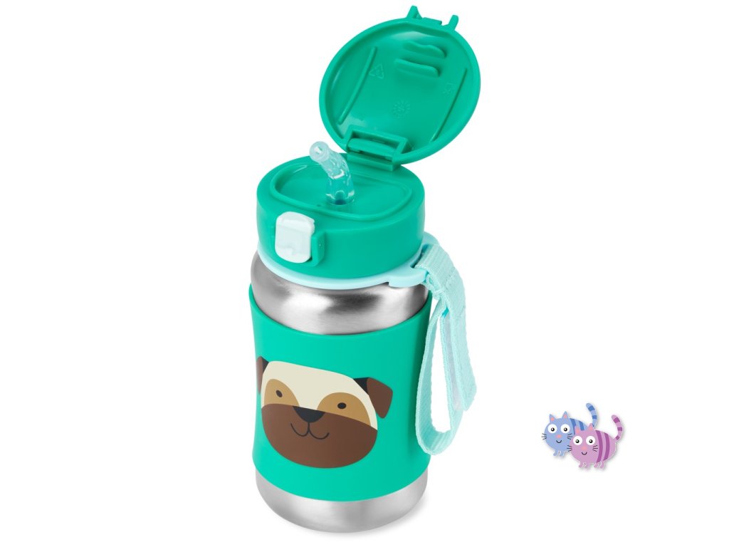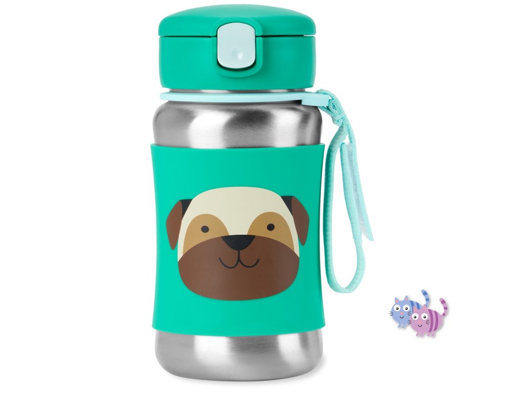 SKIP HOP Spark Style Láhev s brčkem na vodu nerez Mopslík 12m+