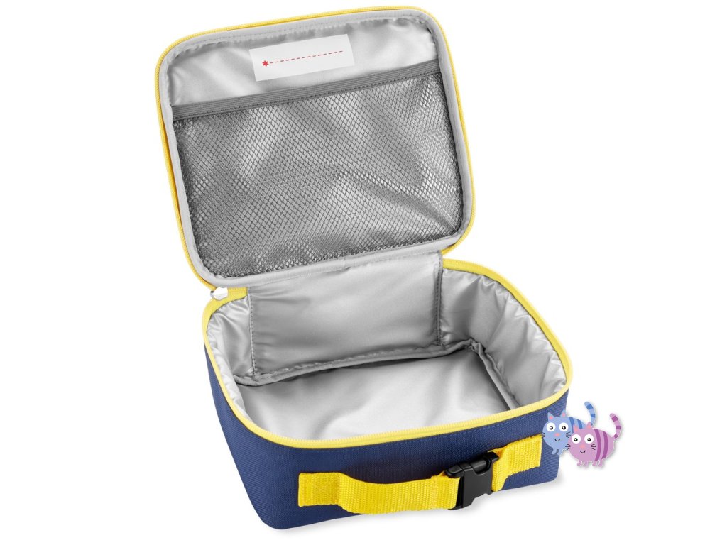 Seznamte se s nejlepším pomocníkem vašeho prcka v době oběda. Díky prostornému a izolovanému interiéru tato rozkošná taška na oběd pomáhá udržovat jídlo a nápoje na cestách v chladu. Díky připínací rukojeti, která se dá připevnit i na batohy, a síťované kapse na náčiní nebo nádobu s ledem, je to nezbytná věc do školy, tábora, na pikniky a podobně.