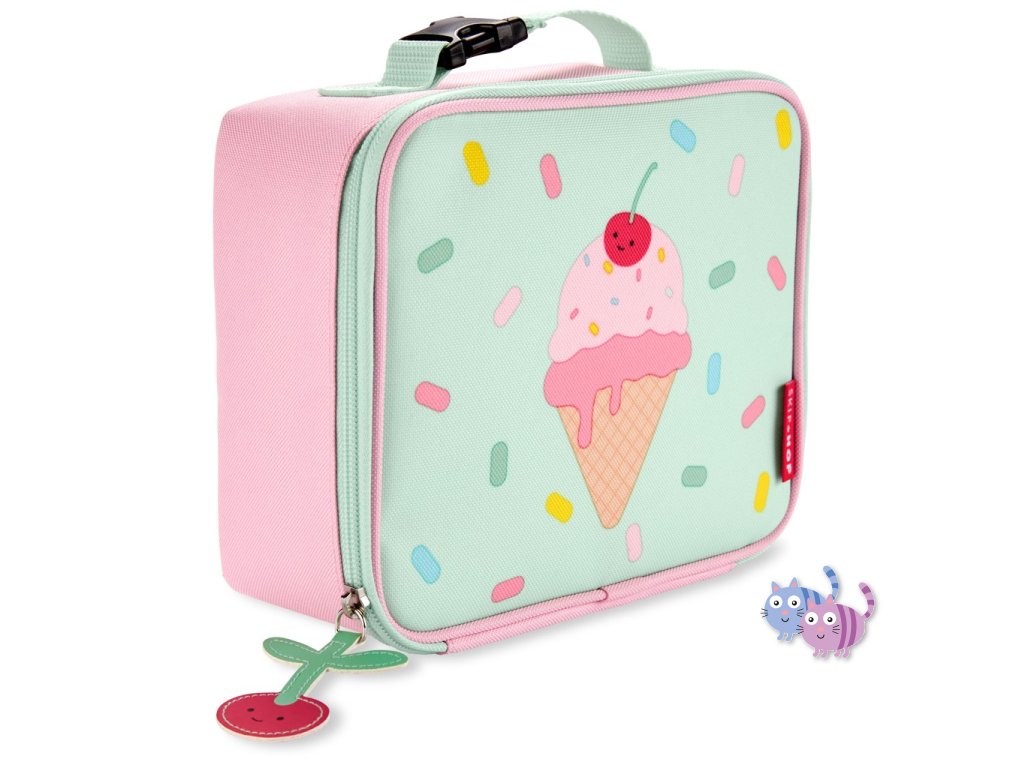 Seznamte se s nejlepším pomocníkem vašeho prcka v době oběda. Díky prostornému a izolovanému interiéru tato rozkošná taška na oběd pomáhá udržovat jídlo a nápoje na cestách v chladu. Díky připínací rukojeti, která se dá připevnit i na batohy, a síťované kapse na náčiní nebo nádobu s ledem, je to nezbytná věc do školy, tábora, na pikniky a podobně.