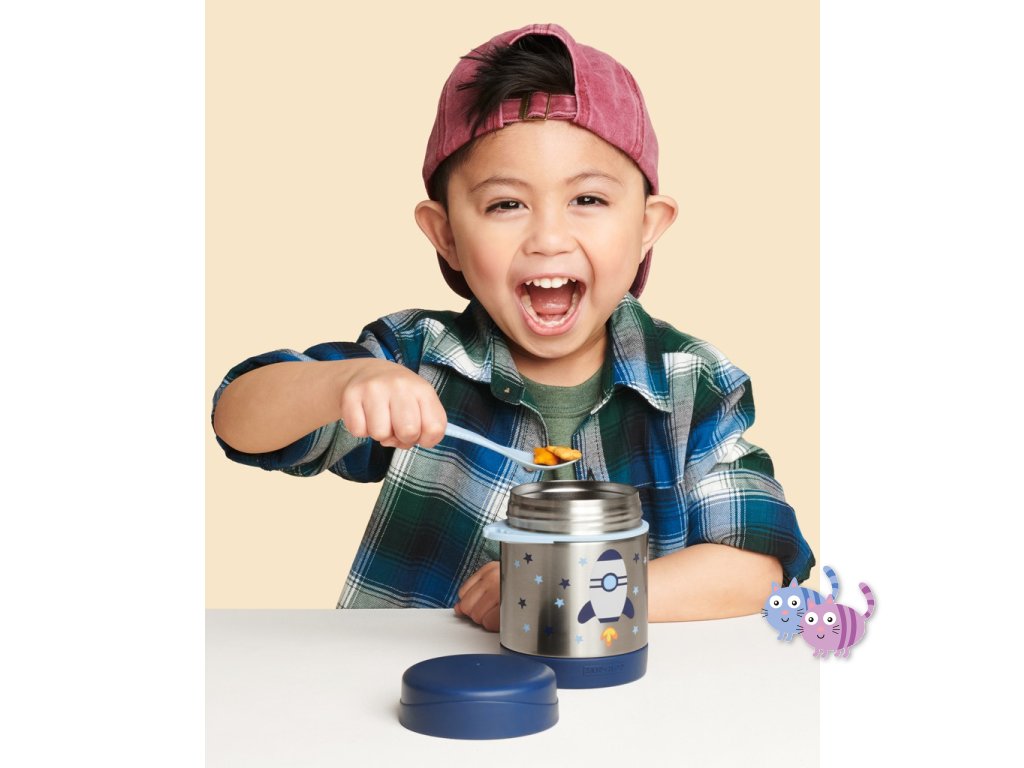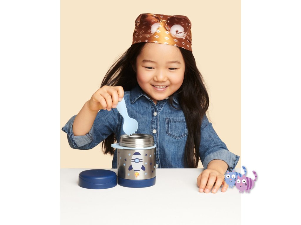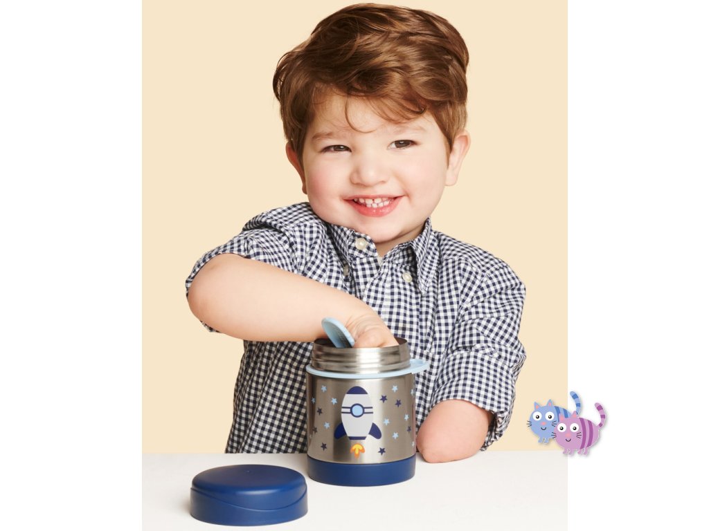 - unikátní design, který si dítě oblíbí a bude více motivováno papat z oblíbené termosky na jídlo značky Skip Hop